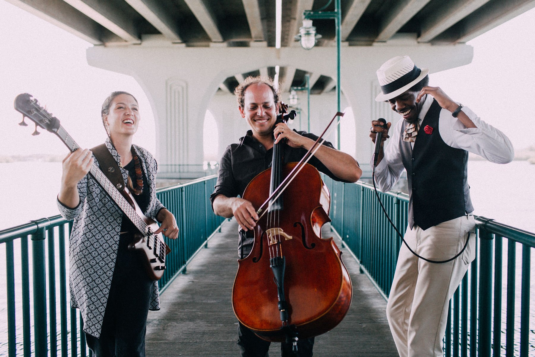 Biribá Union features Mike Block (Cello, Vocals), Christylez Bacon (Beatbox, Guitar, Rhymes), and Patricia Ligia (Electric Bass, Pandeiro, Vocals), forming a dynamic trio that blends original music with global influences, creating a fresh and accessible sound. Each member draws from their diverse backgrounds, such as Brazilian, Bluegrass, Jazz, Classical, Hip-Hop, Funk, and Pop styles, synthesizing them through original compositions and songs that highlight their improvisational spontaneity and high energy stage presentation.